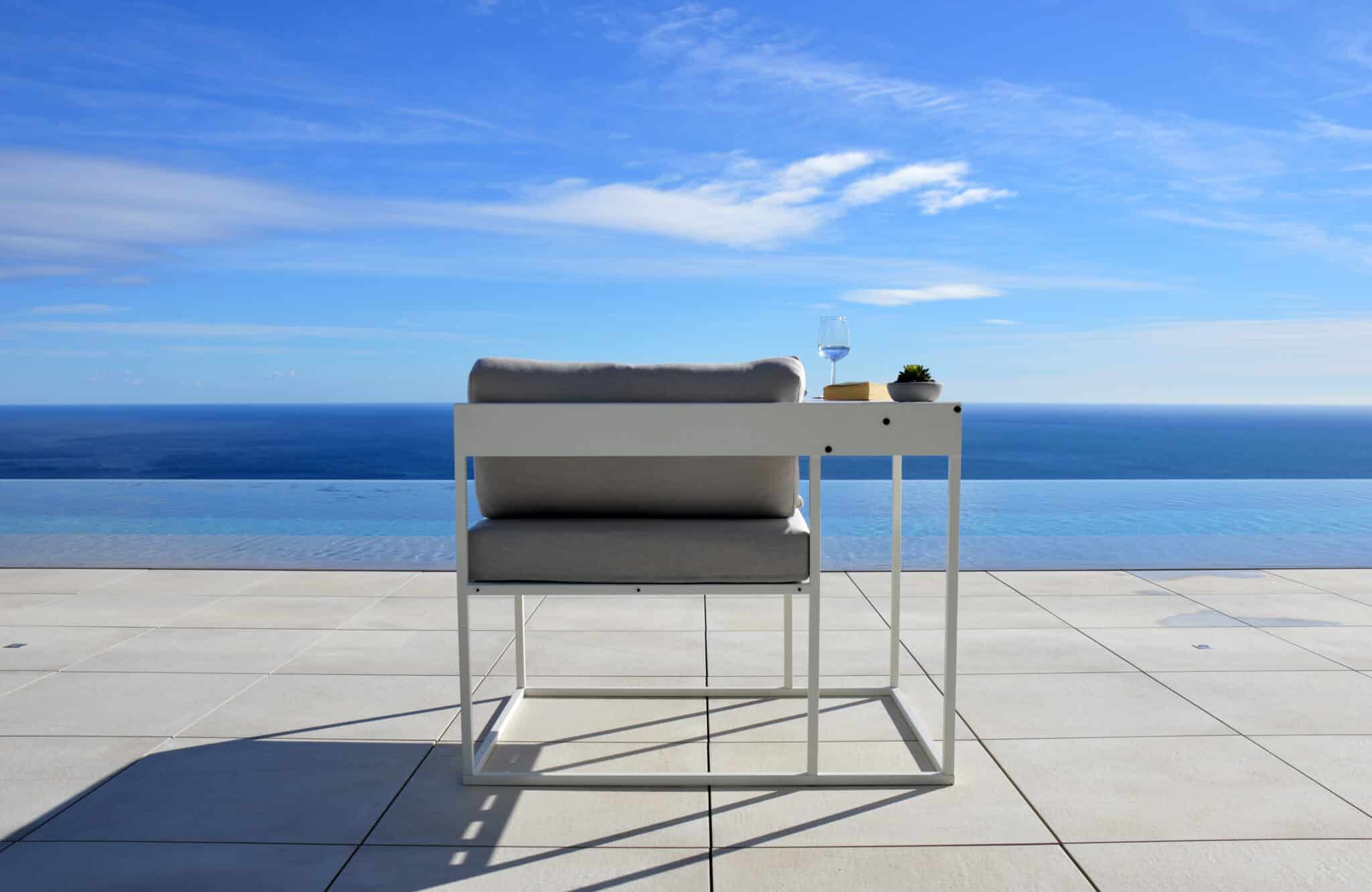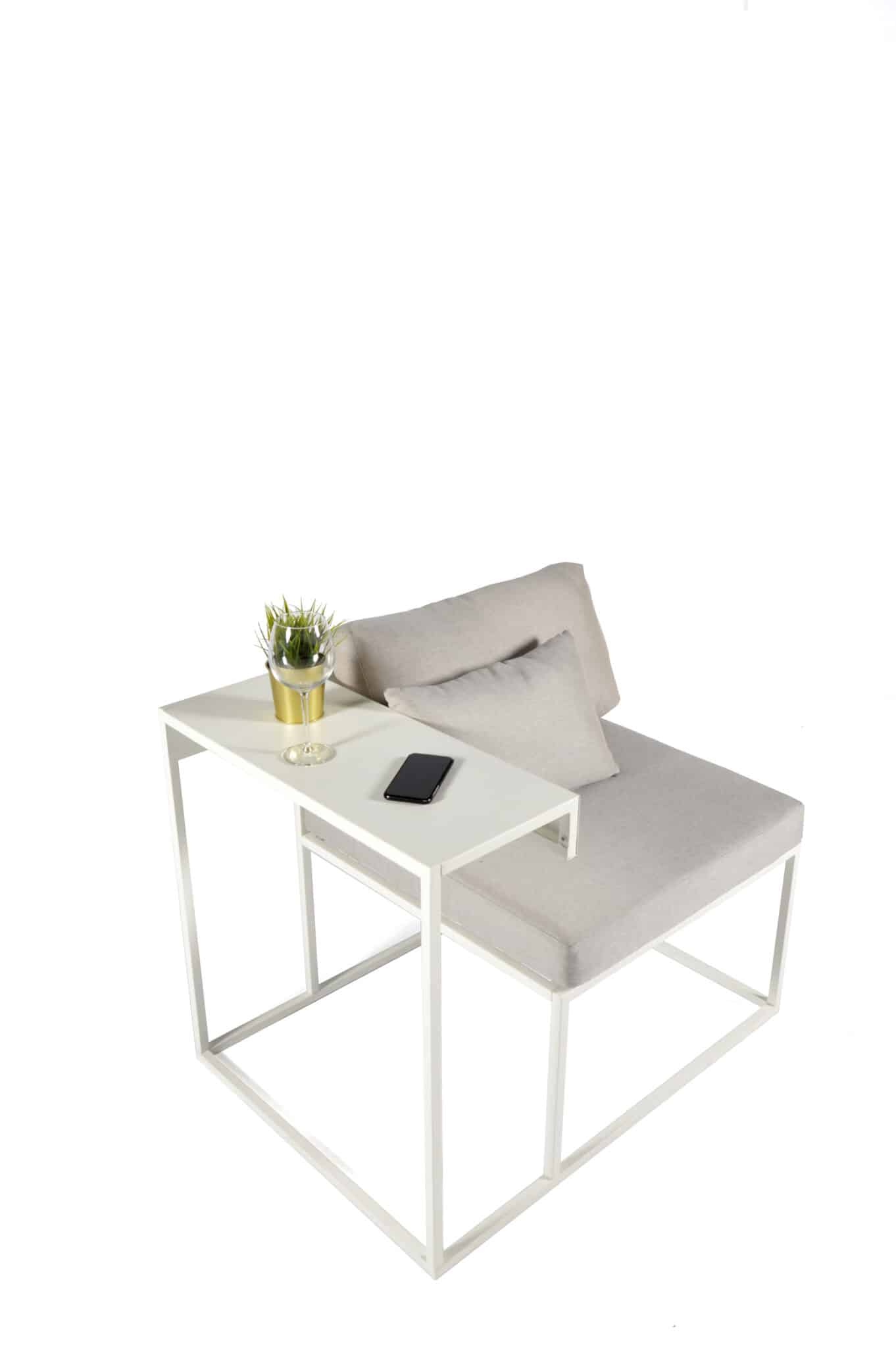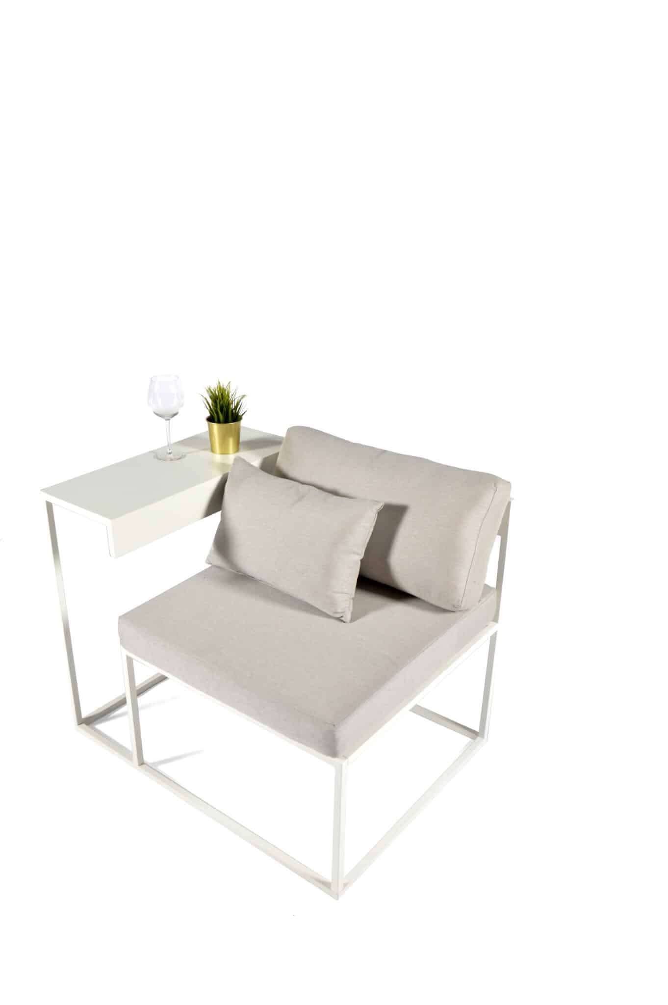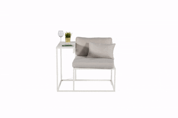 Work and chill balcony lounge. You will never have to choose: this seat and its side table can be set up in both left and right position. Reading, eating, relaxing? This beautiful object will offer all you need in your small spaces.