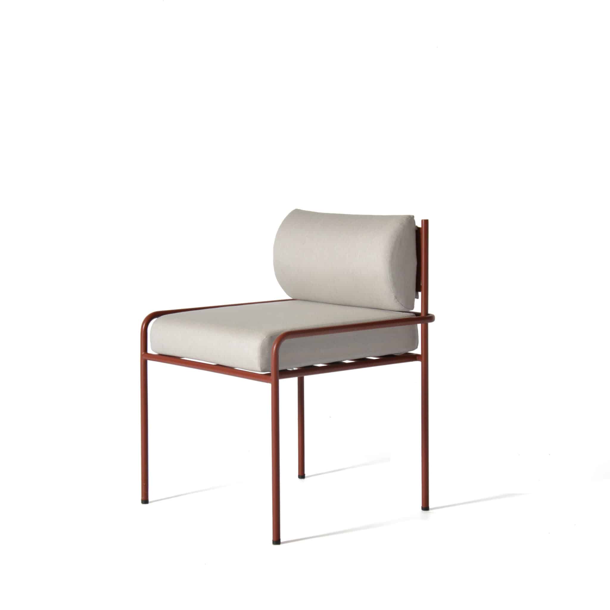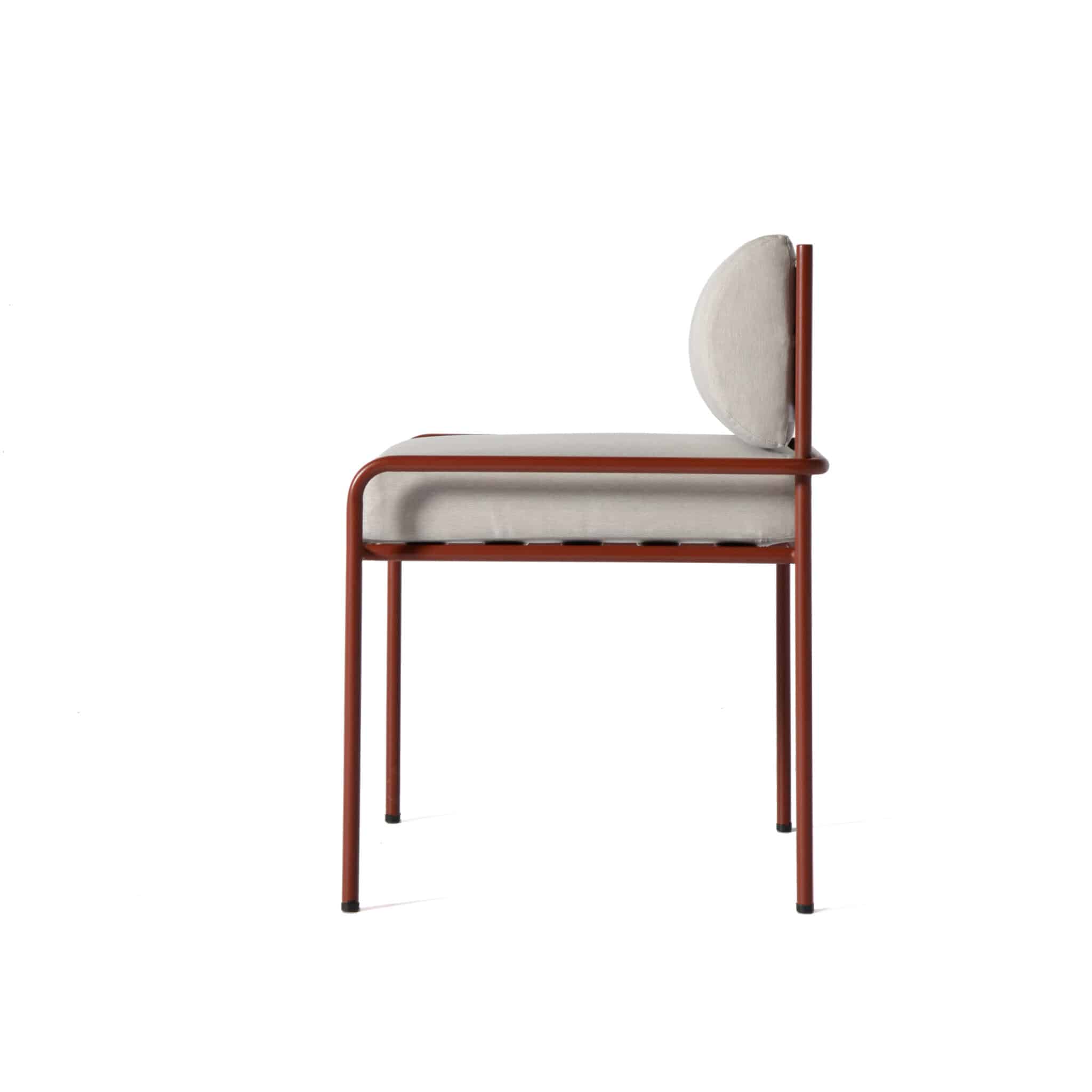 Effortless comfort defines this modern metal dining chair, crowned with a touch of half round elegance.