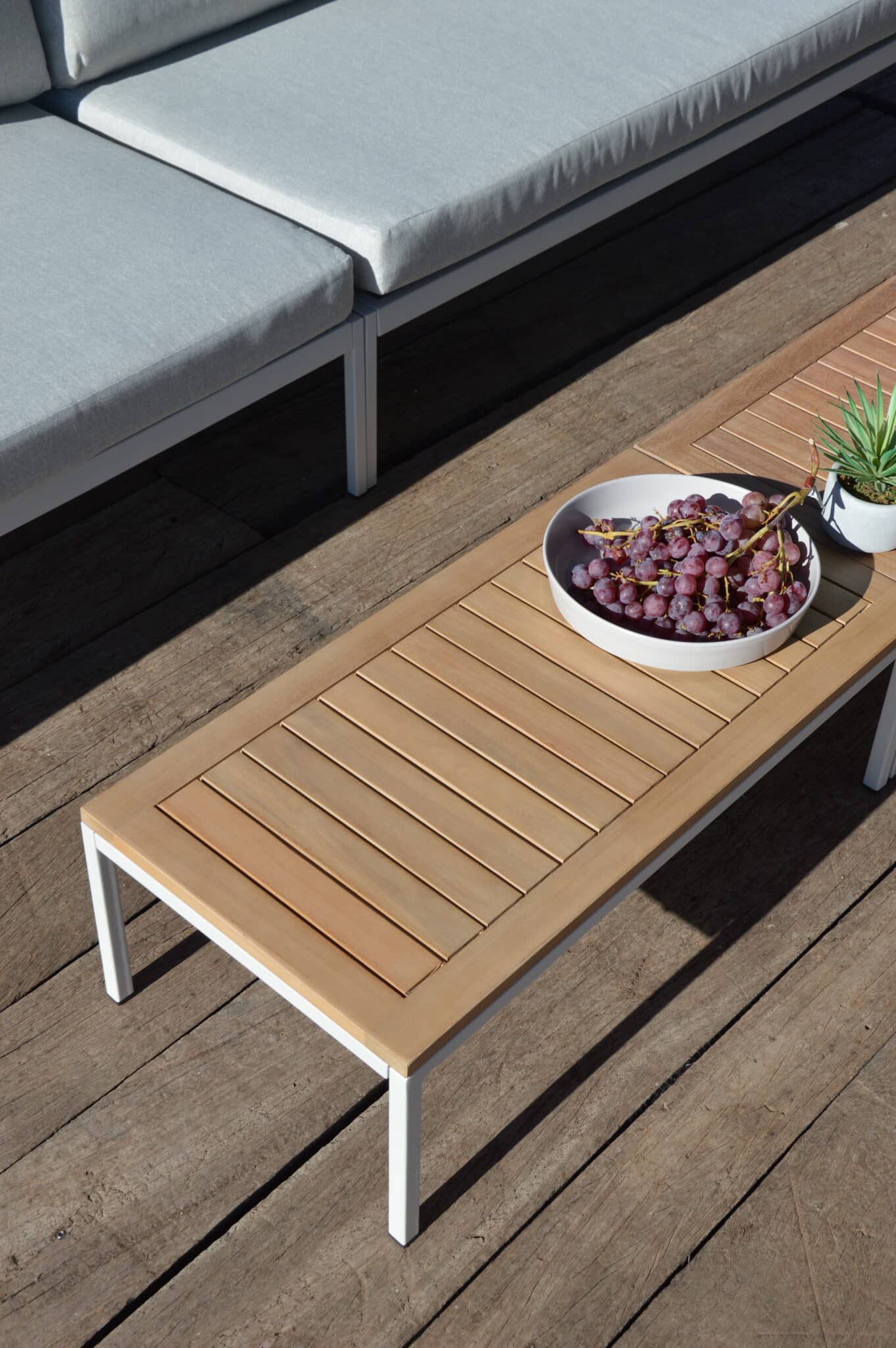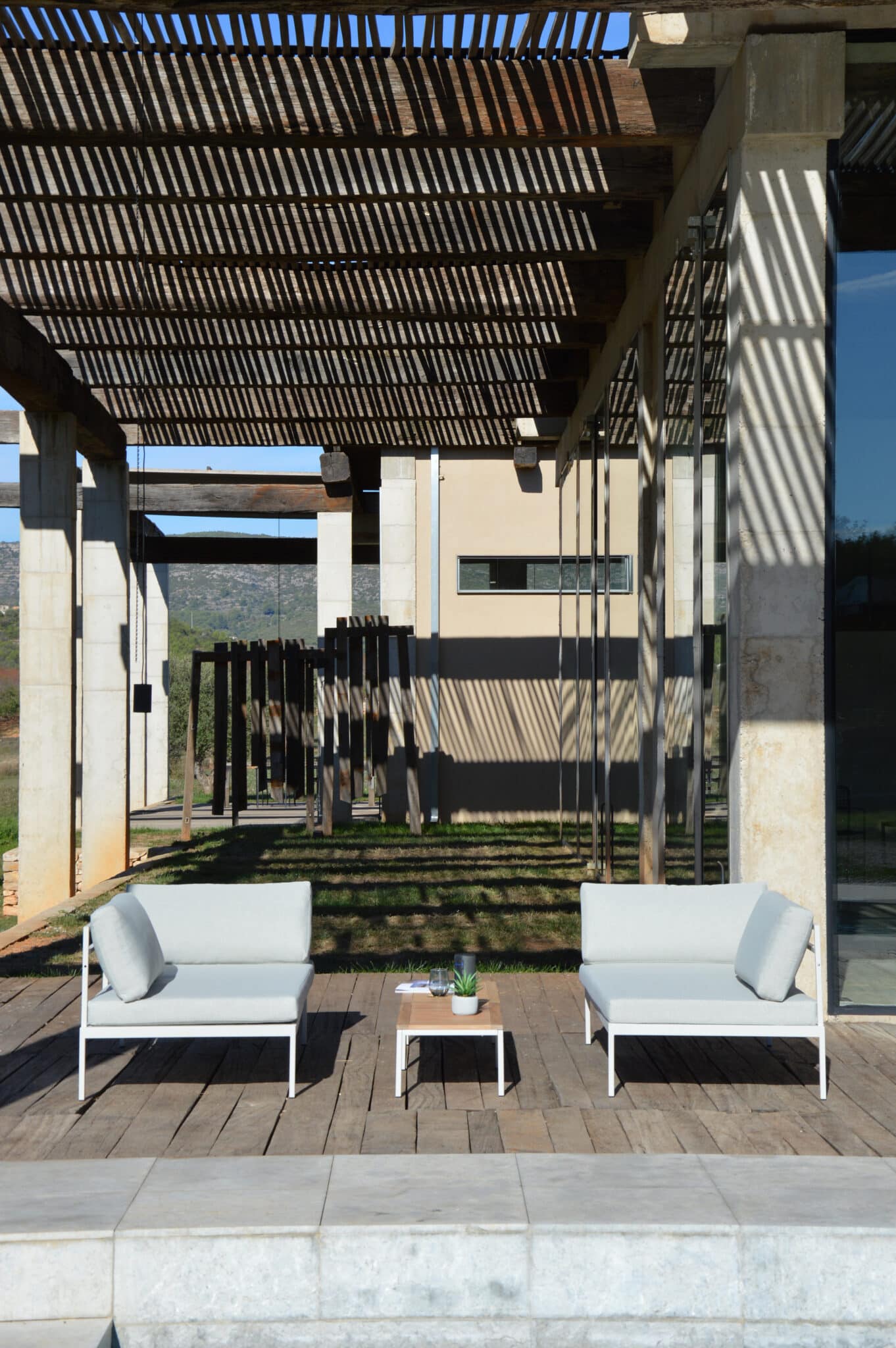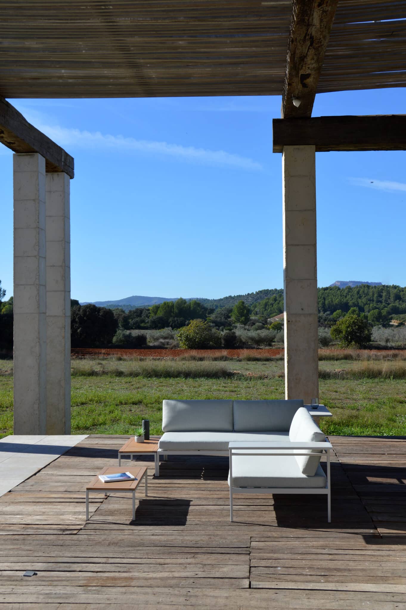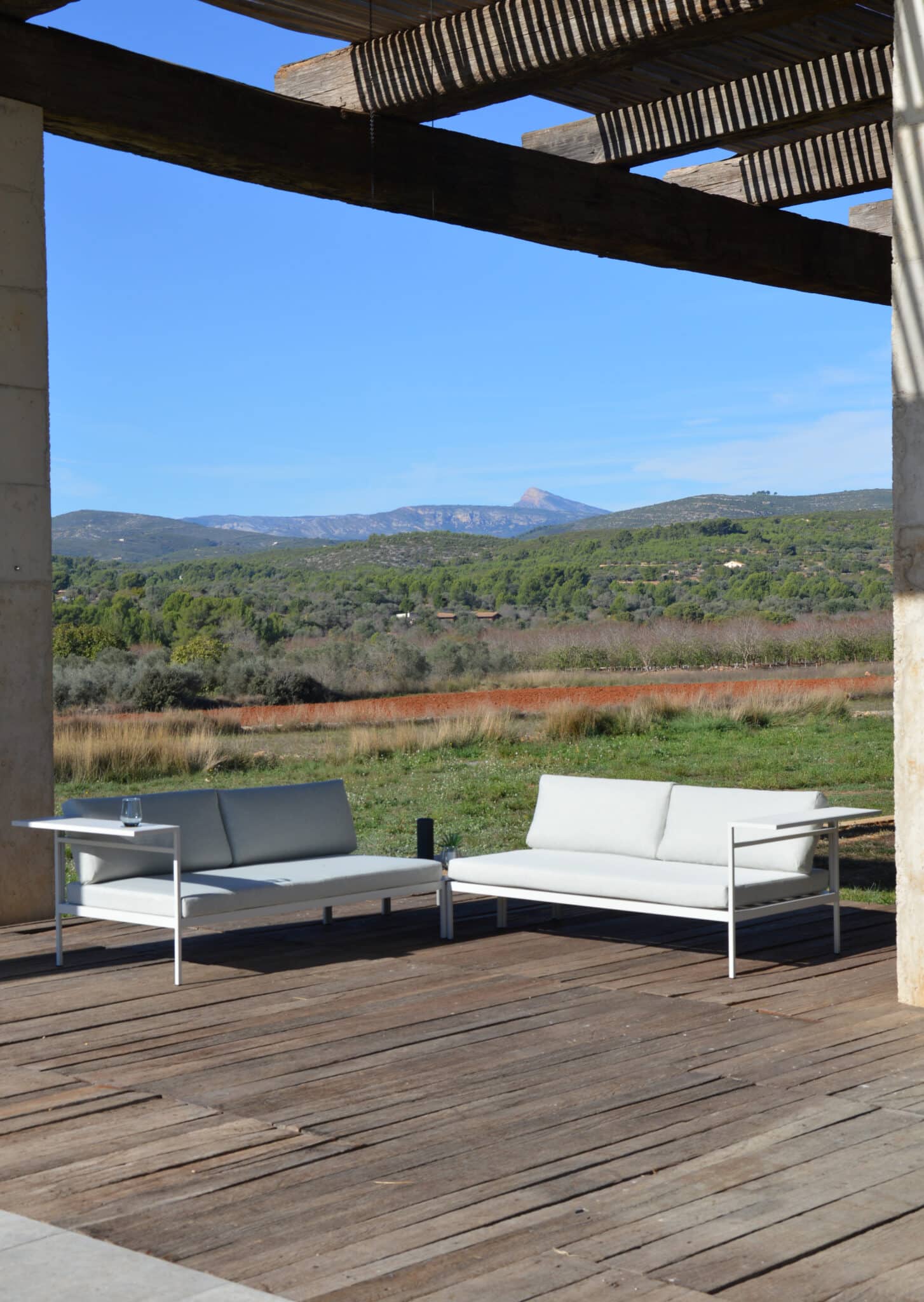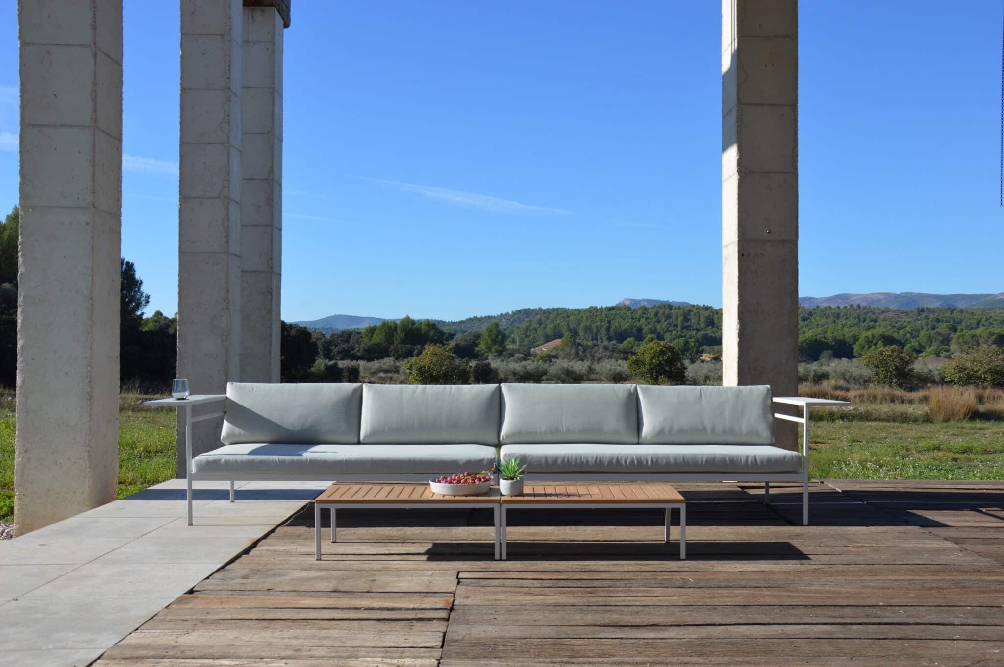 This modular set includes two sofas and two tables that can be displayed in many of different settings. Finally a set wher you don’t need to worry about available space. This set will always fit to your exterior.