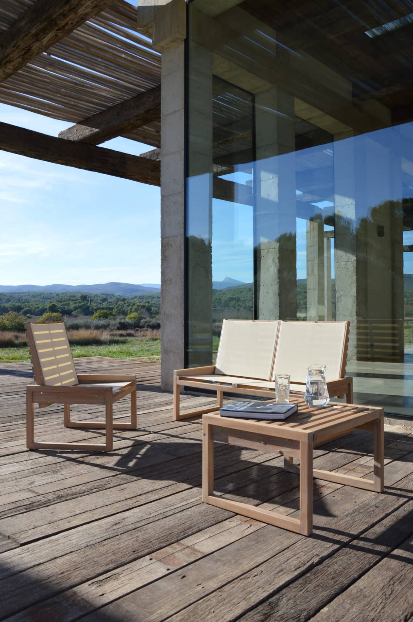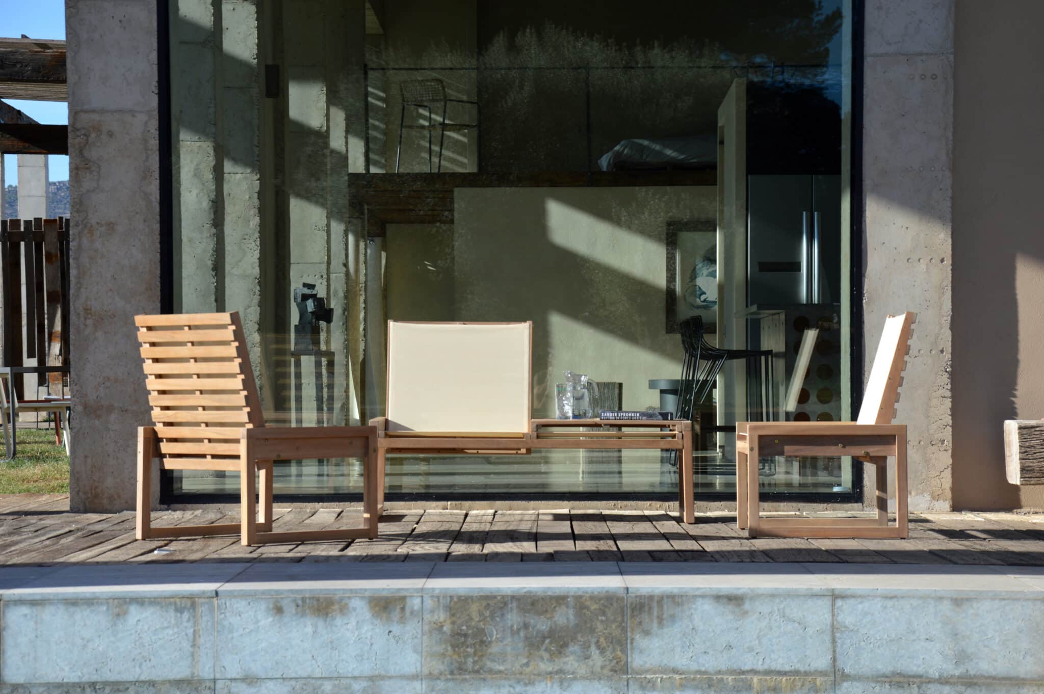 Quick flip seating set A modular bench that become a confortable sofa set. The sofa set stored is a clean bench ready to be used all seasons.
