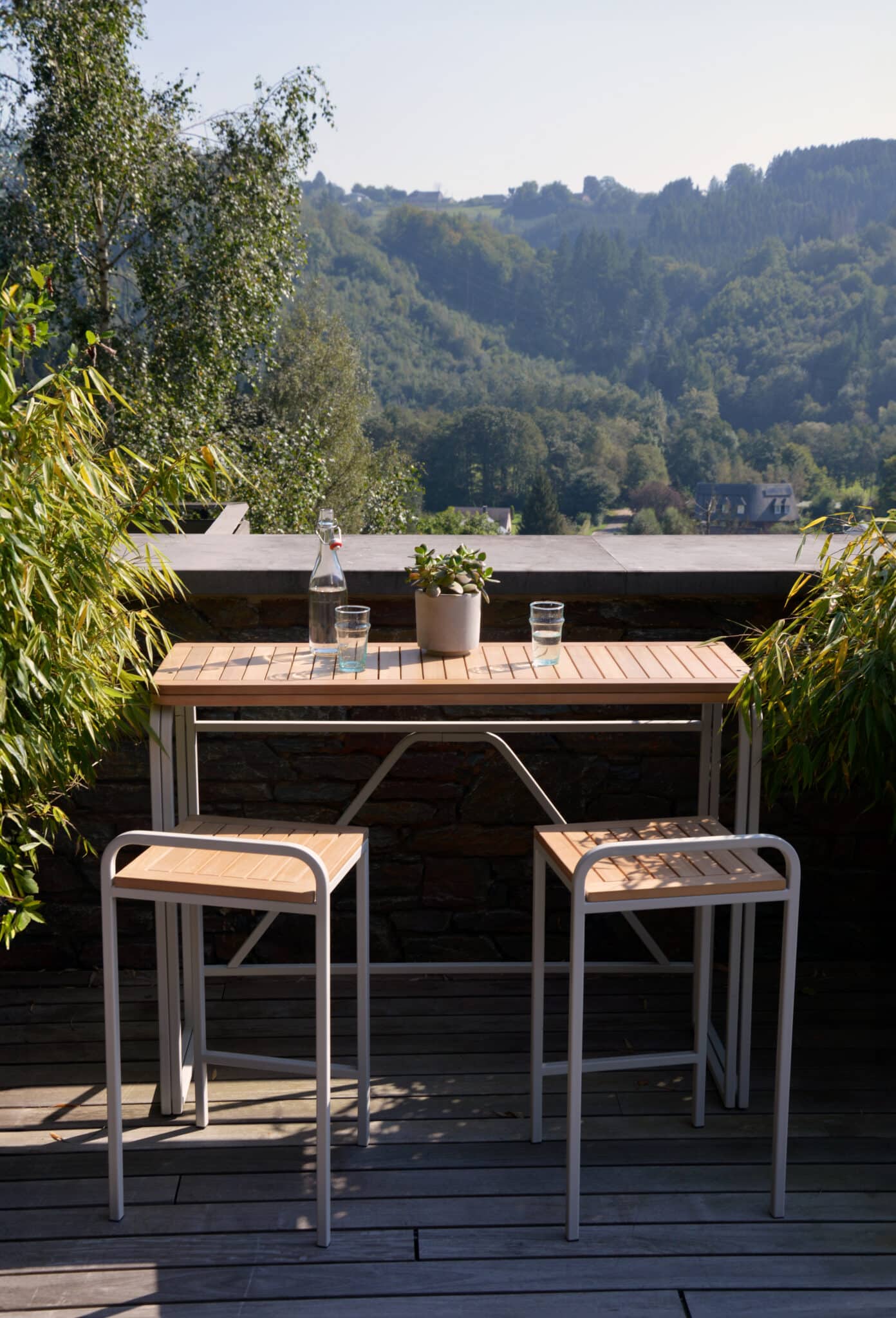 No better way to enjoy the view from your balcony! Guests coming, just open top and unfold galvanised legs frame for a 4 seats balcony bar.