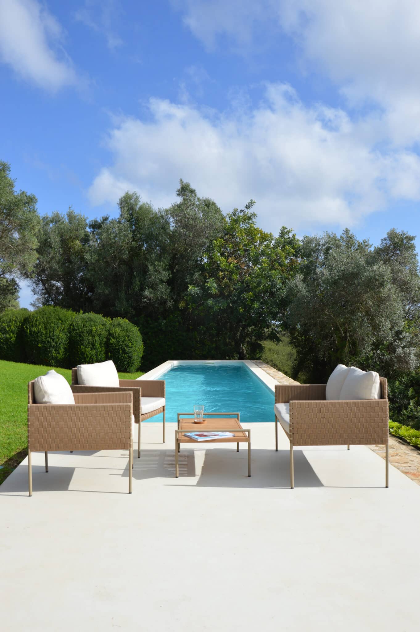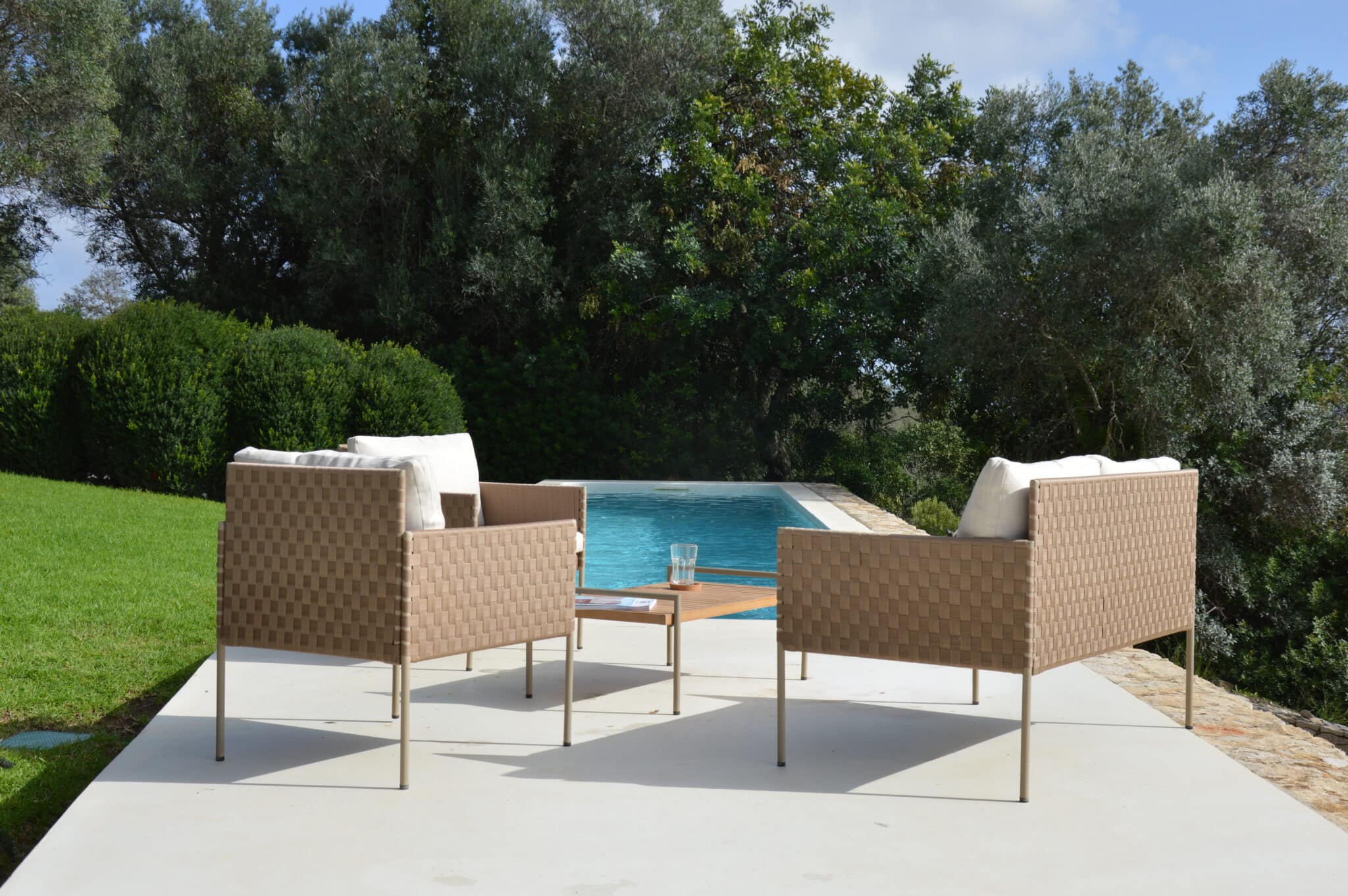 This sofa set features a streamlined design with a sophisticated rope pattern,  delivering both elegance and value in one stylish, compact package.
