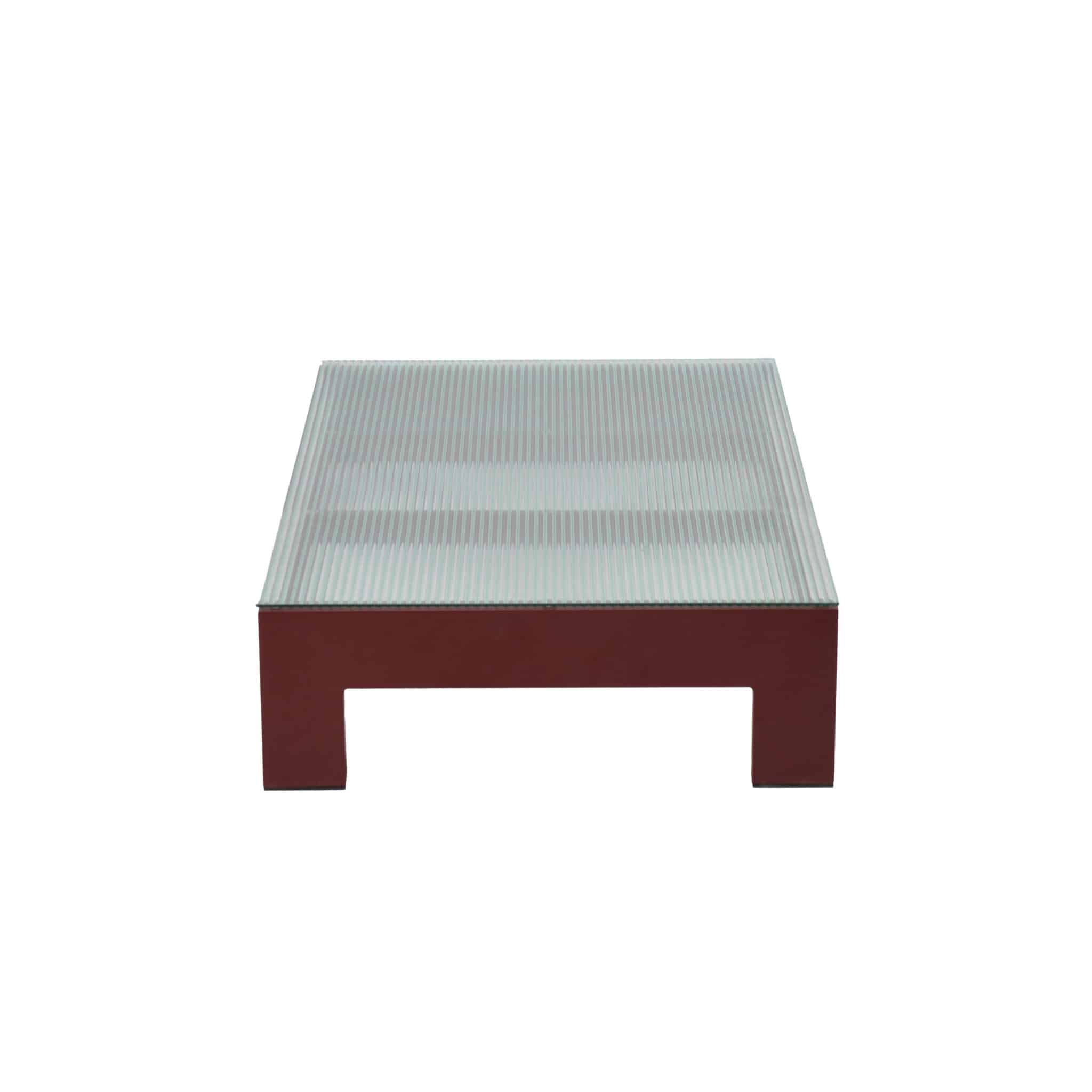 This rectangular low table features a sleek aluminium frame paired with a transparent ribbed glass top, creating a refined play of light and texture. Its minimalist design and balanced proportions make it a natural complement to the L67 lounge collection.