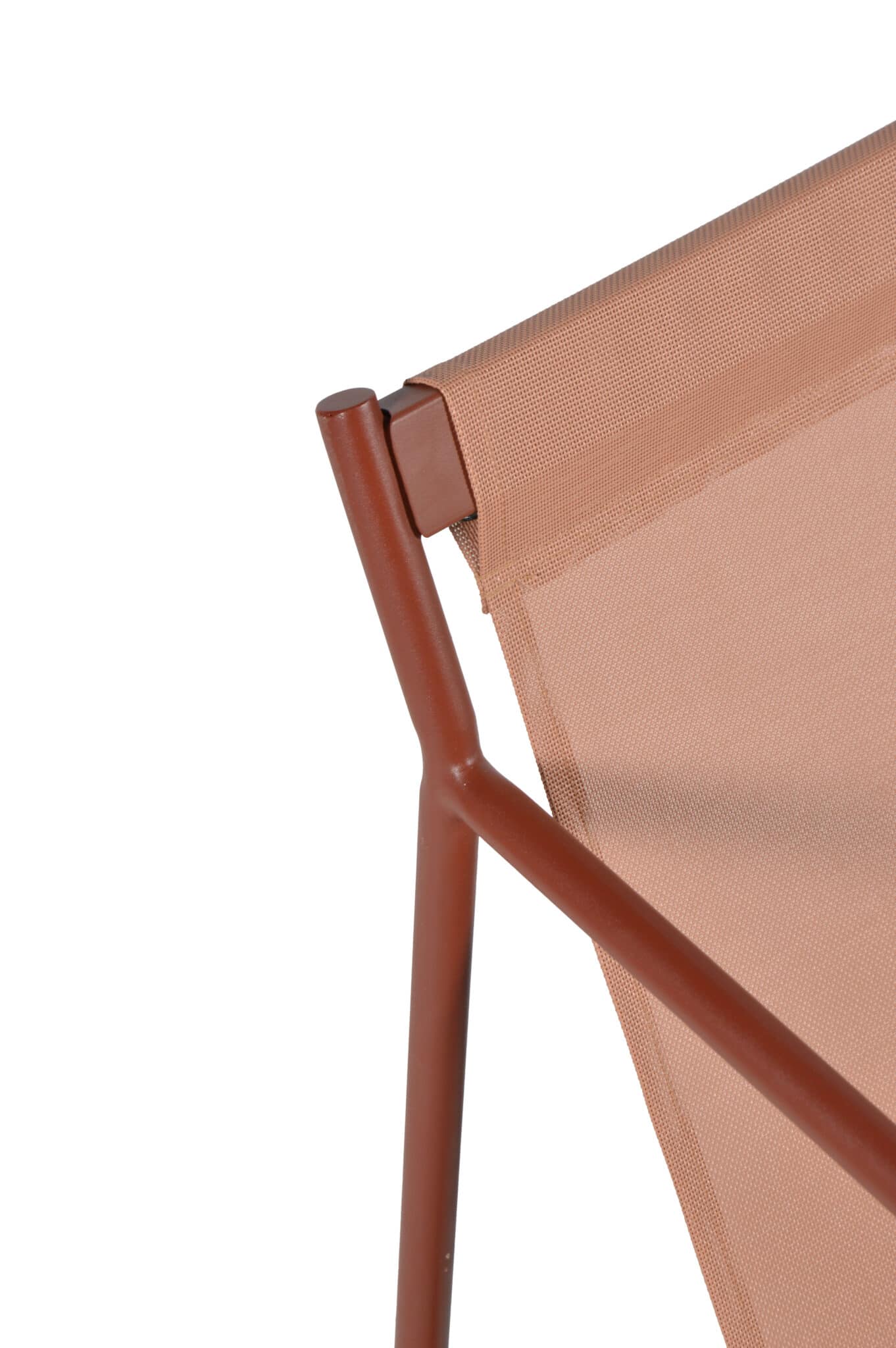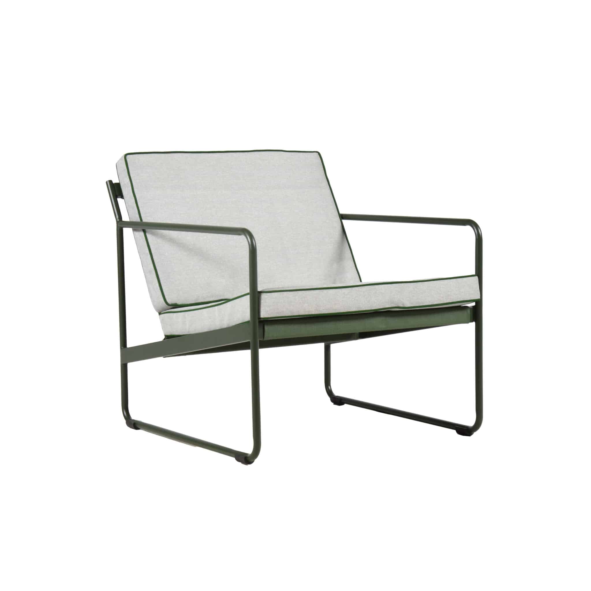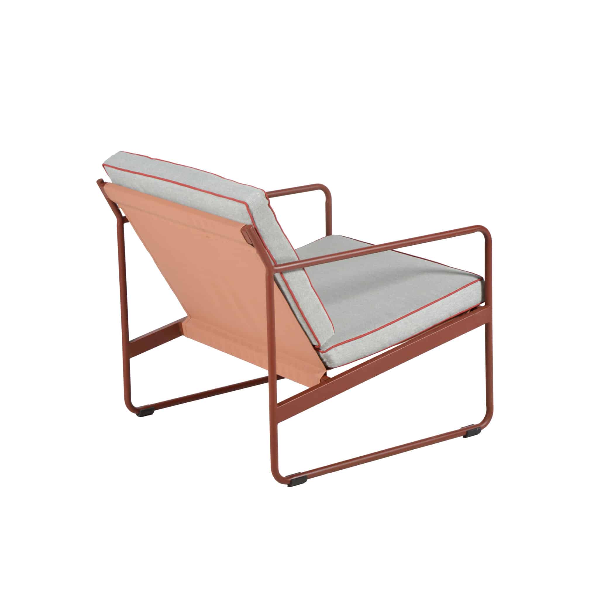 This compact outdoor lounge chair combines a sleek galvanized-steel frame with a durable textilene seat, offering both strength and modern elegance. Delivered flat-packed with a hidden-screw assembly system, it ensures a clean, seamless look once built. The seat and back cushions feature a refined contrasting piping that adds a touch of sophistication.