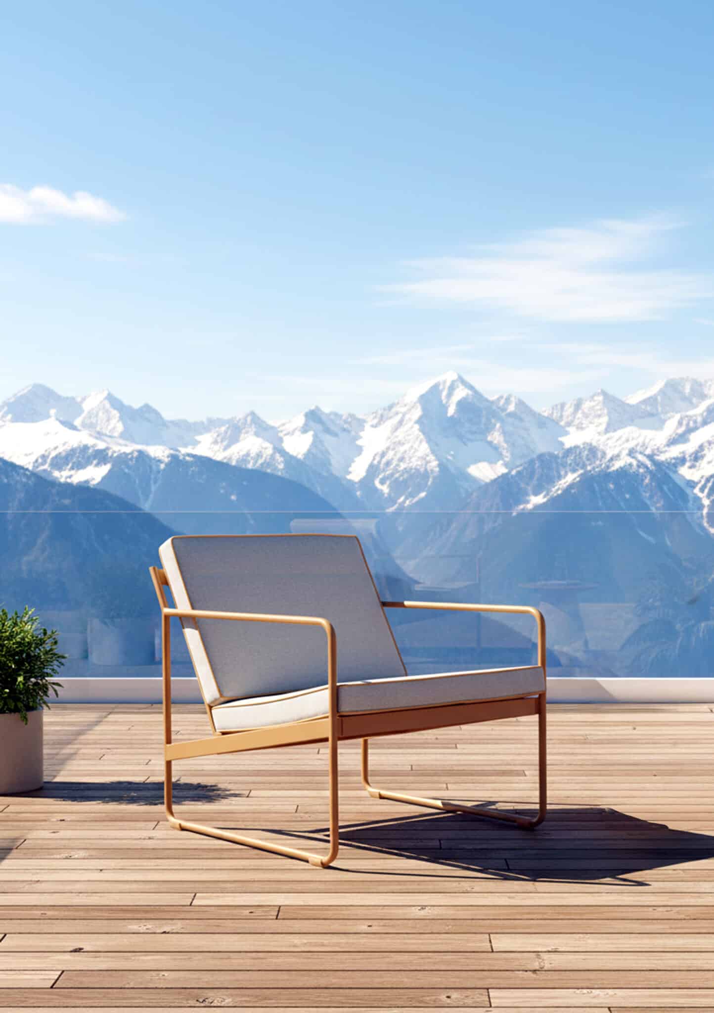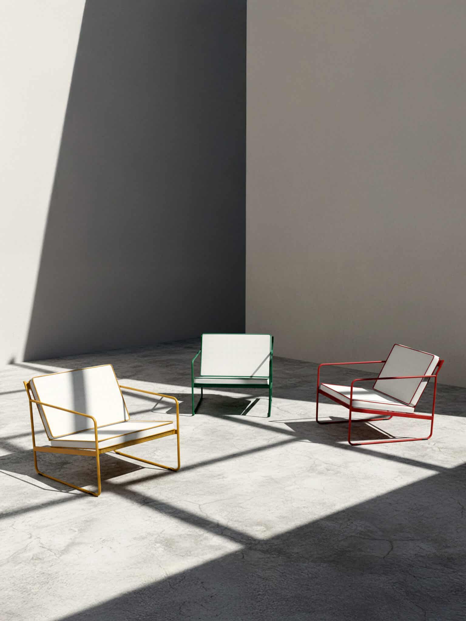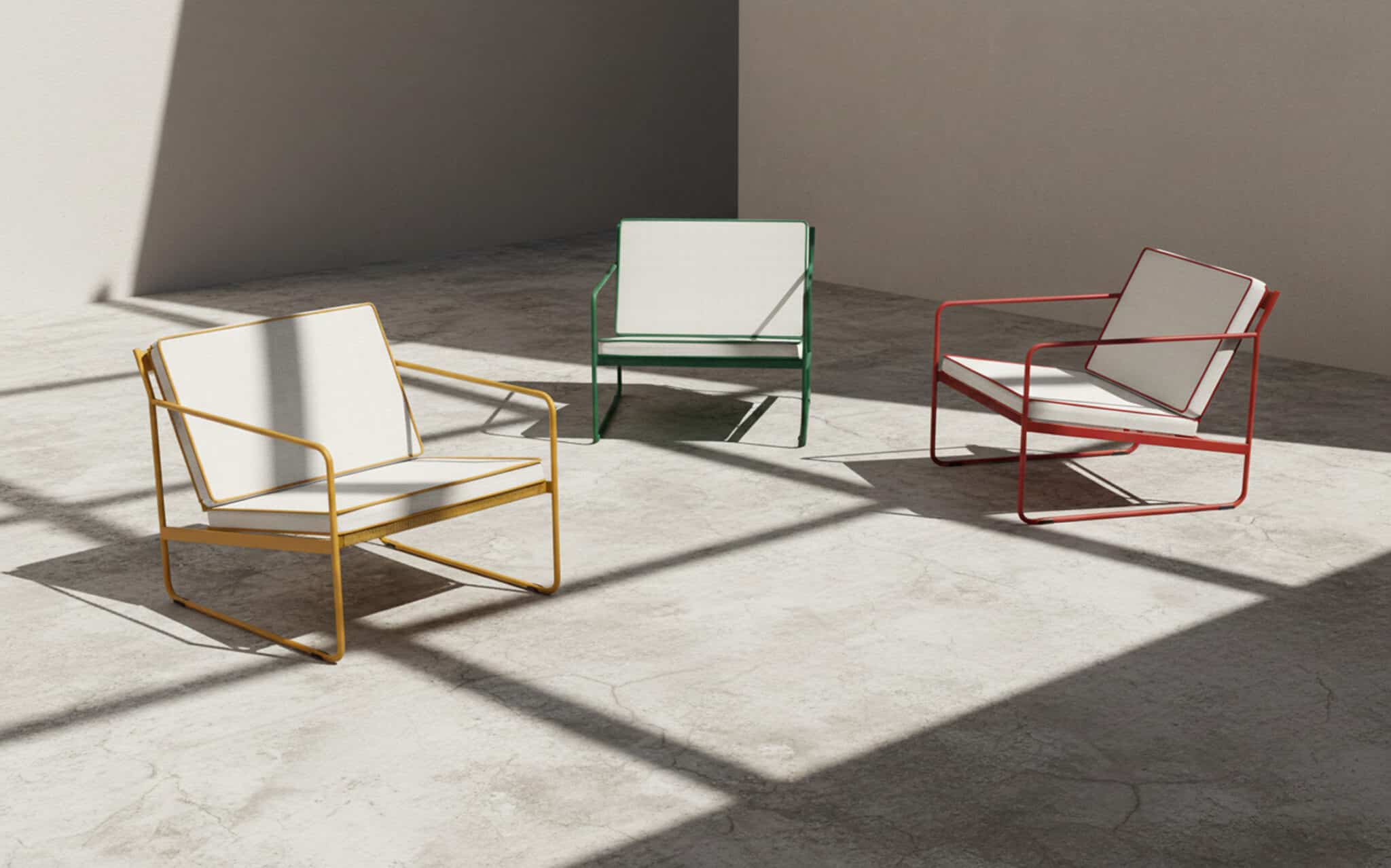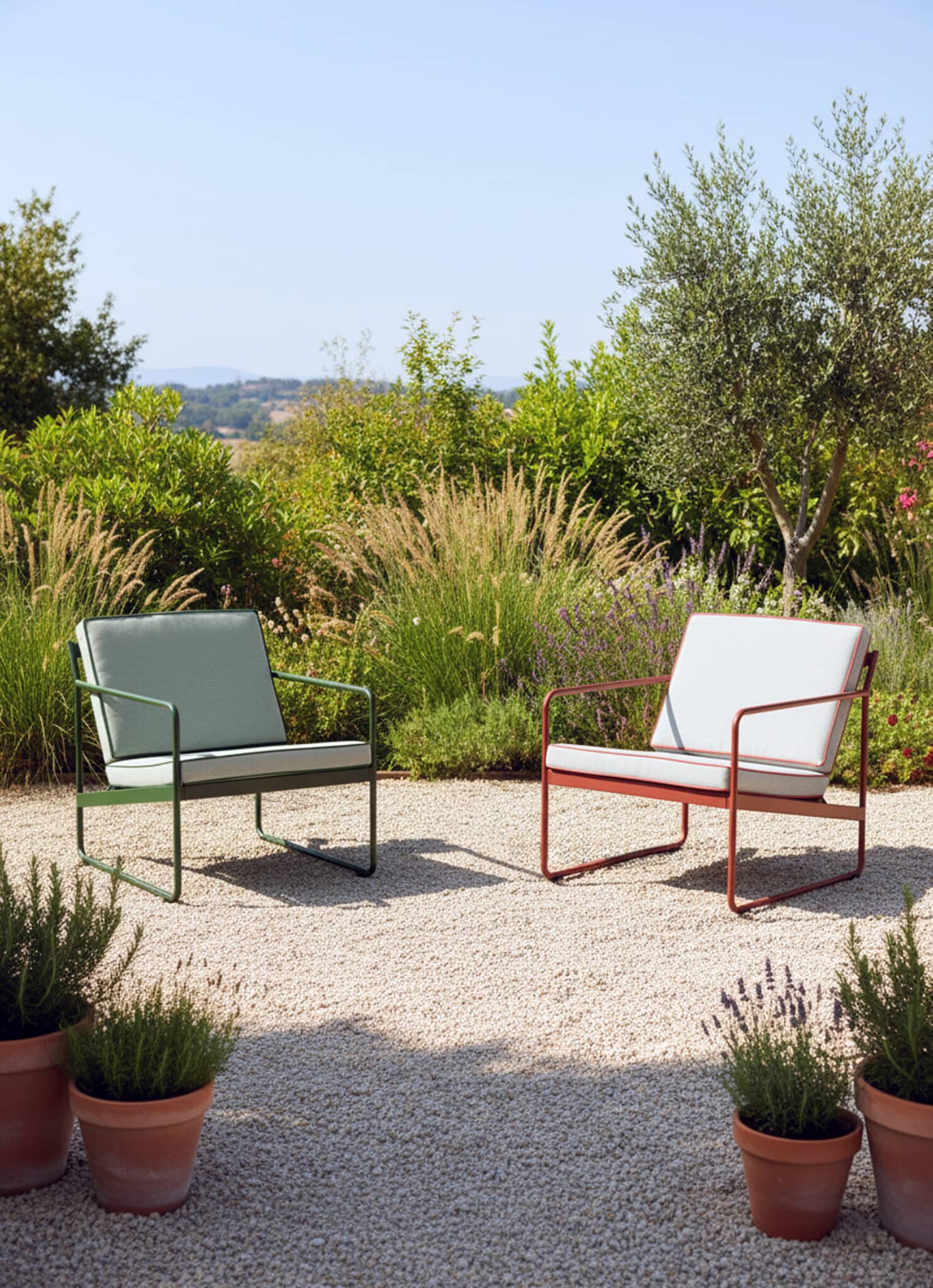 This compact outdoor lounge chair combines a sleek galvanized-steel frame with a durable textilene seat, offering both strength and modern elegance. Delivered flat-packed with a hidden-screw assembly system, it ensures a clean, seamless look once built. The seat and back cushions feature a refined contrasting piping that adds a touch of sophistication.